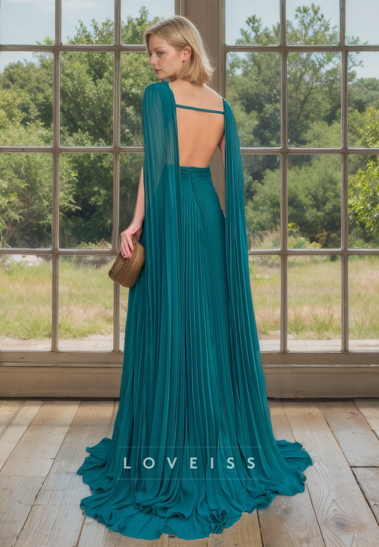 Bateau Sleeveless Backless Pleated A-Line Mother of Bride Dress