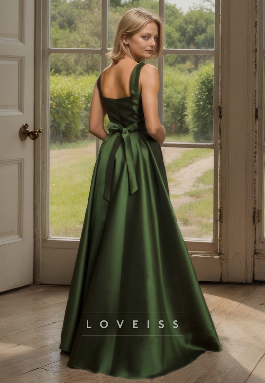 Square Sleeveless Pleated Satin A-Line Mother of Beide Dress