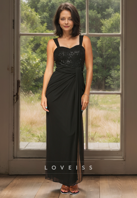 Scoop Straps Ruched Side Slit Mermaid Mother of Bride Dress
