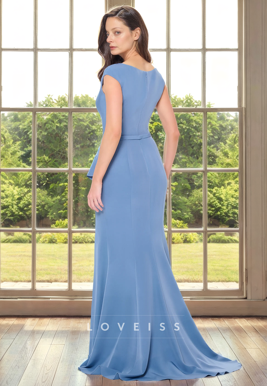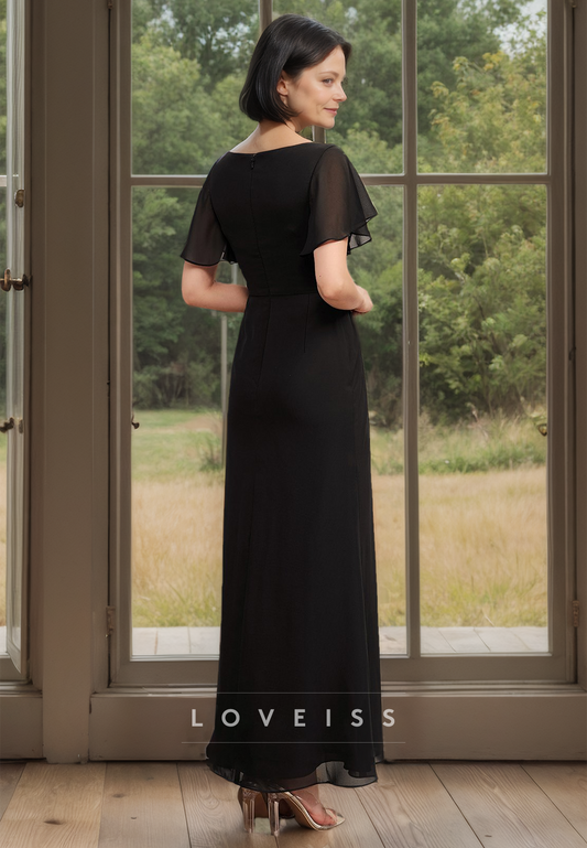 Bateau Sleeves Ruched Side Slit Mother of Bride Dress