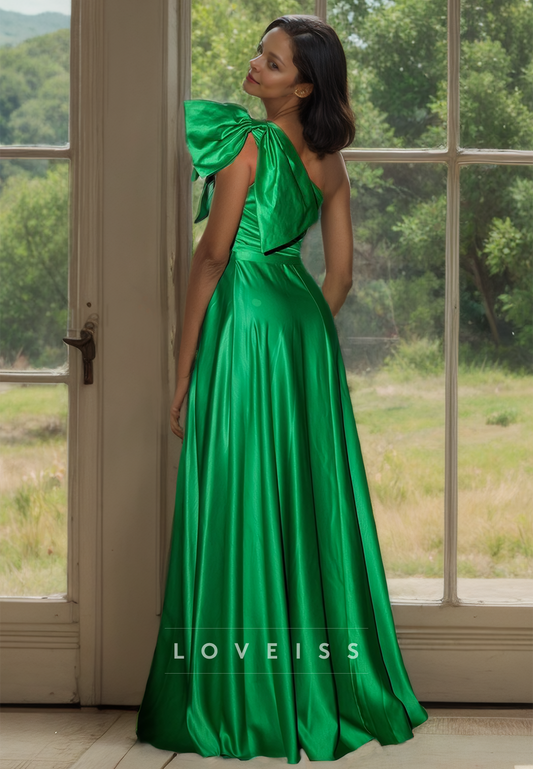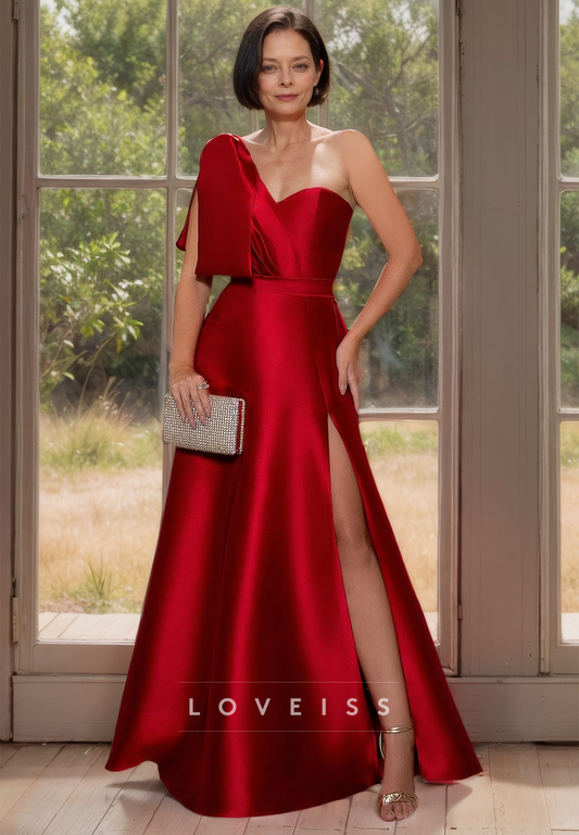 One Shoulder Sleeveless Side Slit Sleek Satin Mother of Bride Dress