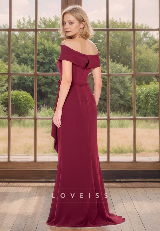 Off-Shoulder Strapless Side Slit A-Line Mother of Bride Dress