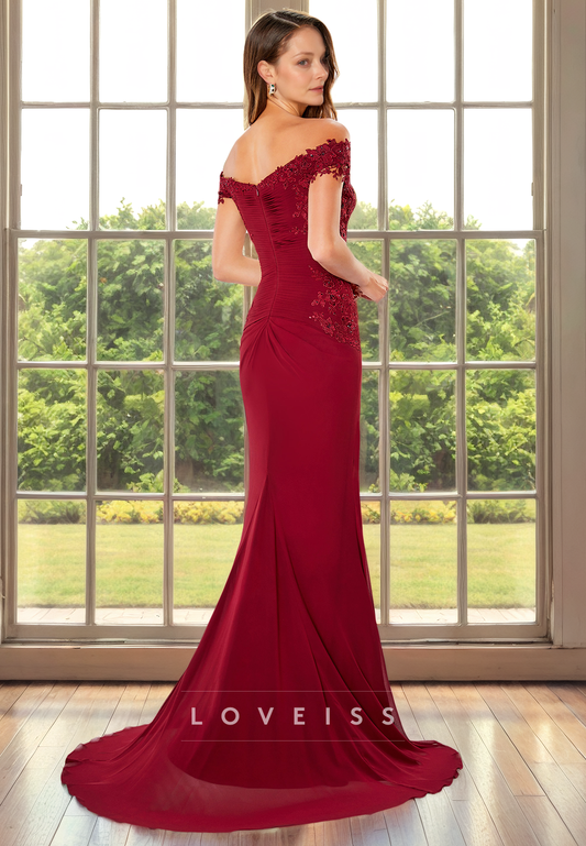 Off-Shoulder Strapless Appliques Sleek Mermaid Mother of Bride Dress