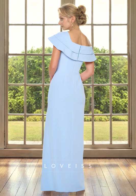 One Shoulder Sleeveless Ruched High Slit Mother of Bride Dress