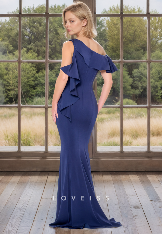 Asymmetrical Sleeves Ruffled Mermaid Mother of Bride Dress