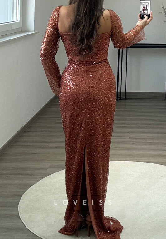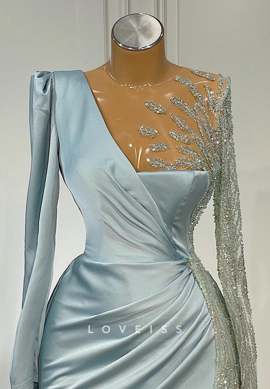 One Shoulder Long Sleeves Formal Dress Sheath Evening Dress