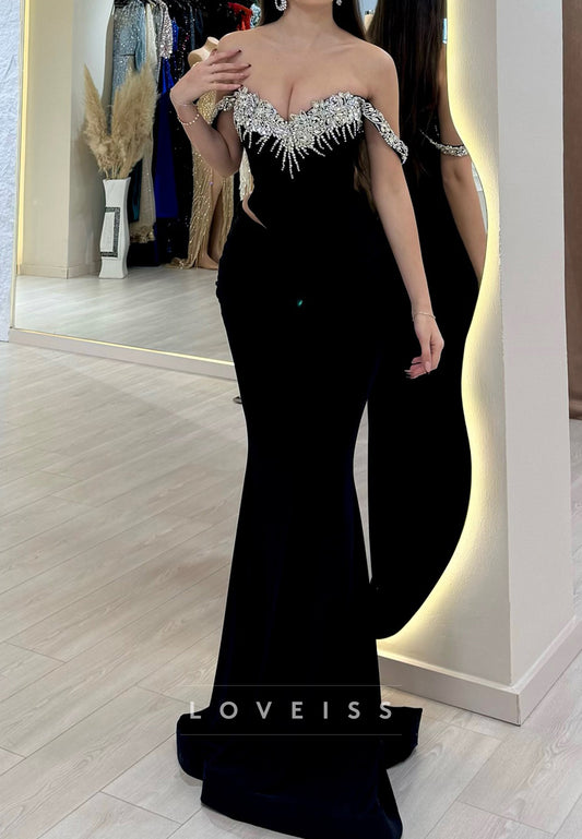 Off-Shoulder Strapless Beaded Formal Dress Mermaid Evening Dress