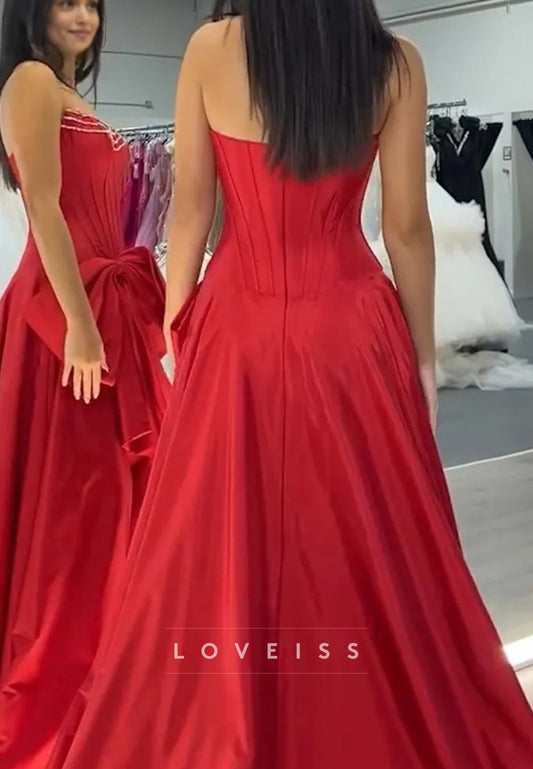 Off-Shoulder Strapless Pleated Bowknot Party Dress Satin A-Line Prom Dress