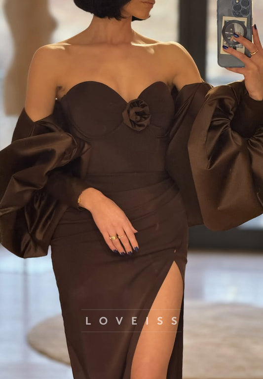 Off-Shoulder Strapless Side Slit Sparkly Evening Dress