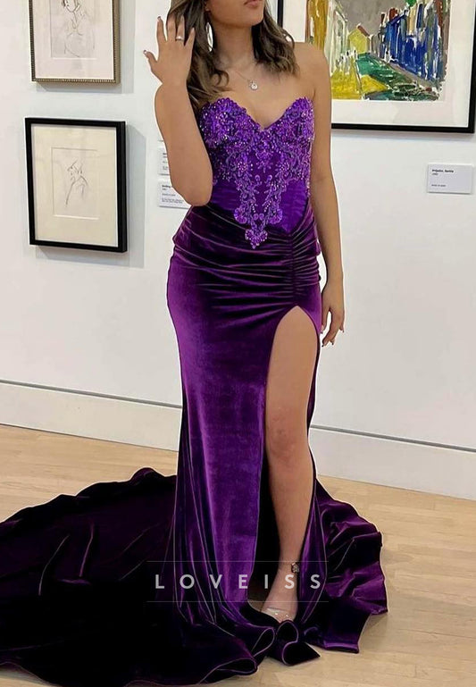 Sweetheart Sleeveless Appliques Velvet Sheath Prom Dress