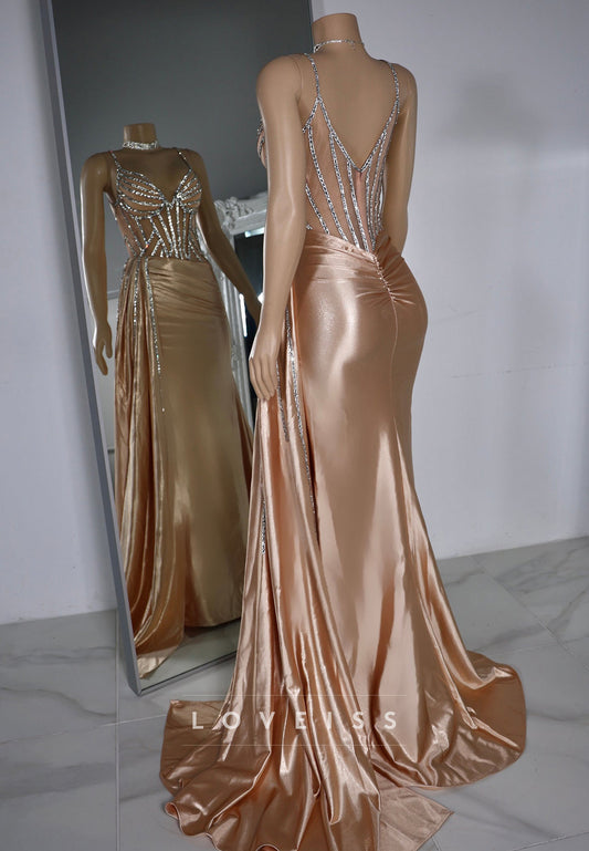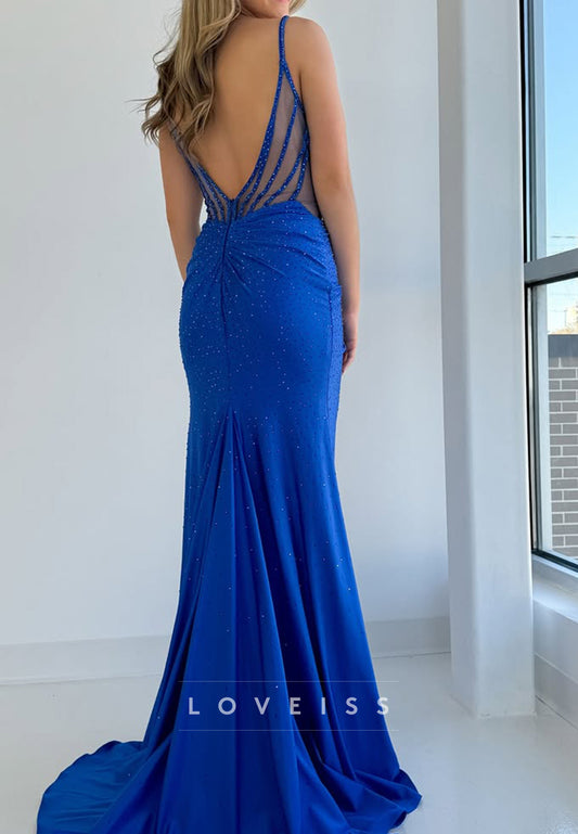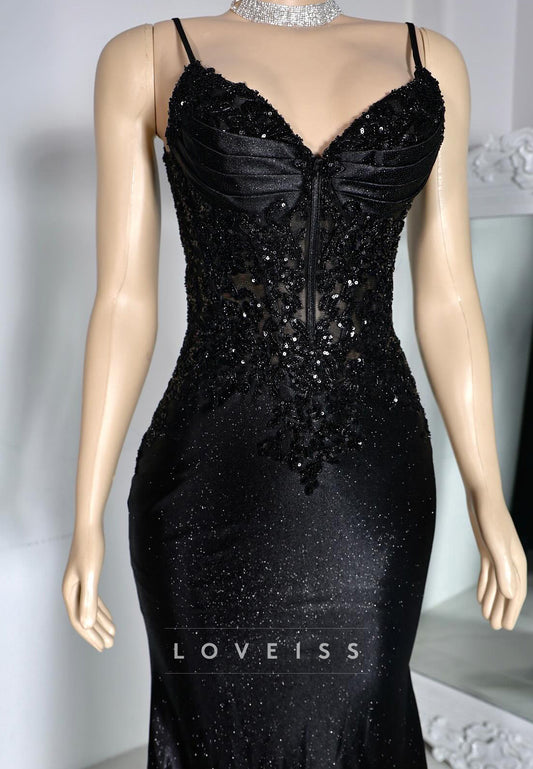 V-Neck Spaghhetti Straps Party Dress Sparkly Sheath Evening Dress