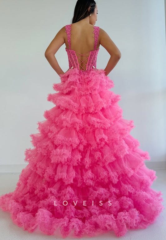 Sweetheart Straps Appliques Tiered Ball Gown Prom Dress