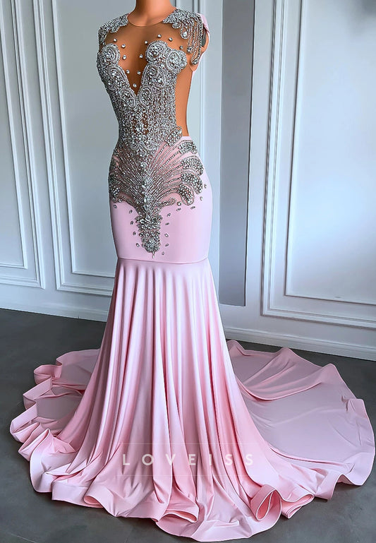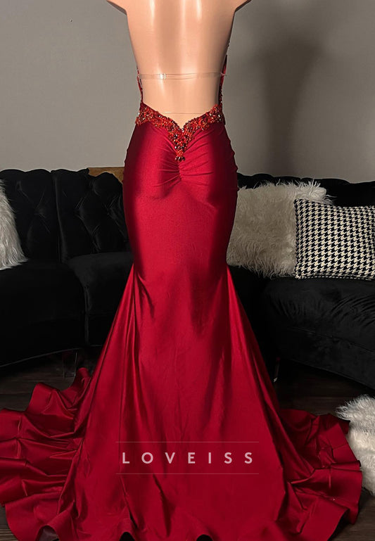 V-Neck Illusion Beaded Pleated Mermaid Prom Dress for Black Girls