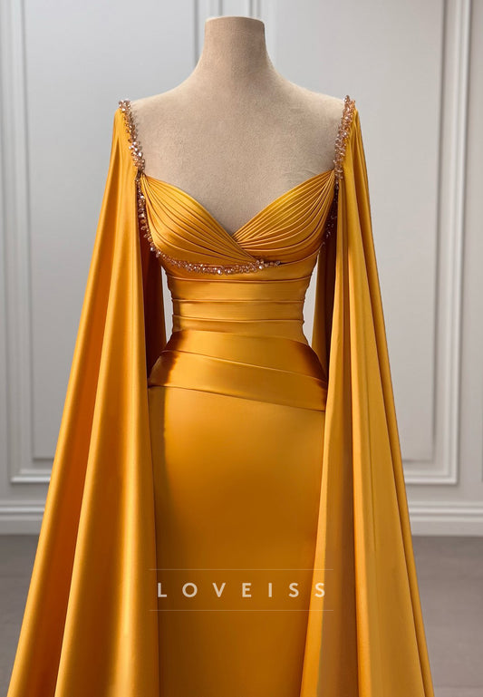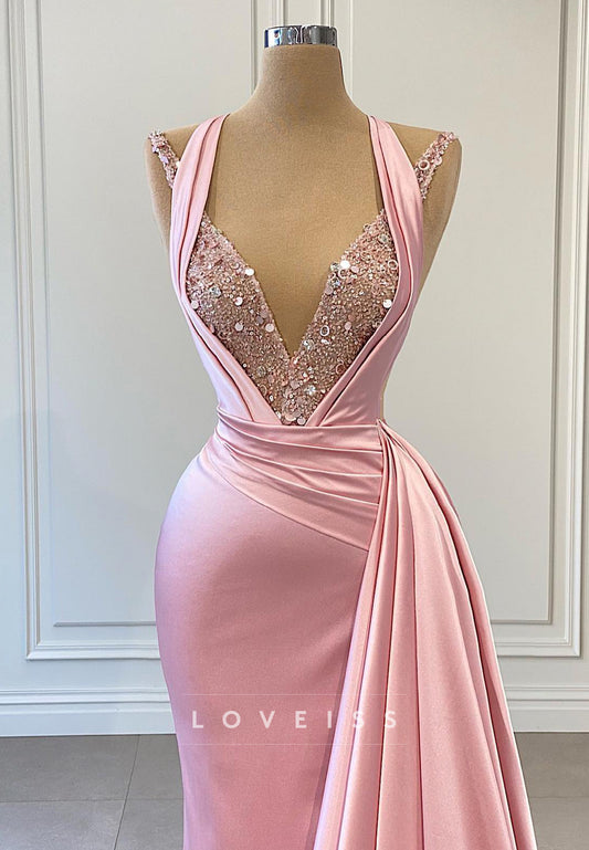 V-Neck Sleeveless Sleek Pleated Satin Formal Dress Mermaid Party Dress