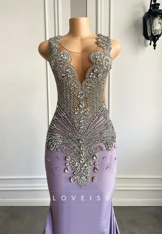 V-Neck Sleeveless Baeded Sheath Prom Dress for Black Girls