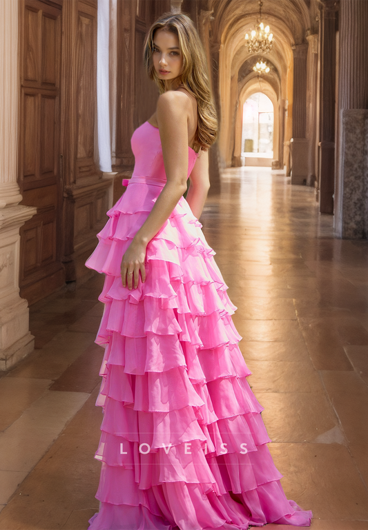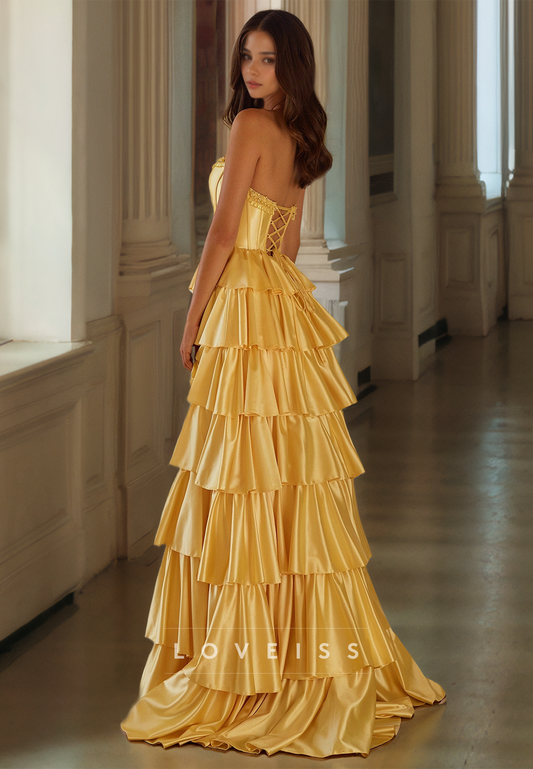 Sweetheart Sleeveless Beaded Side Slit Tiered A-Line Prom Dress