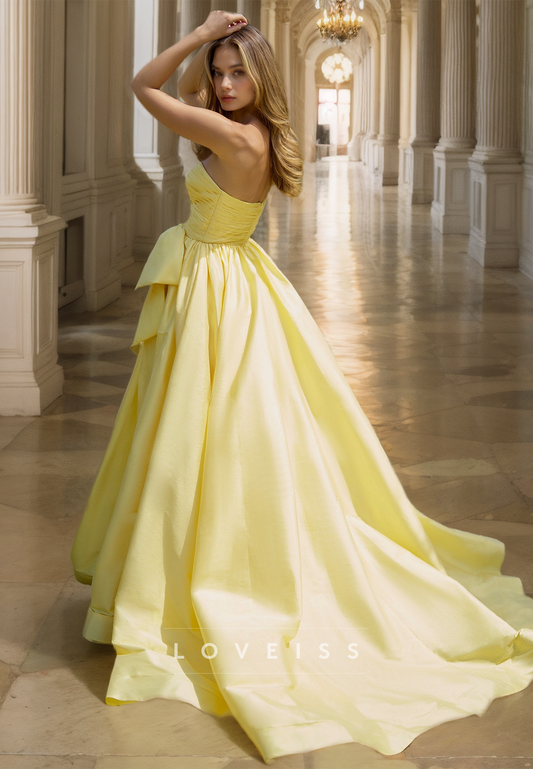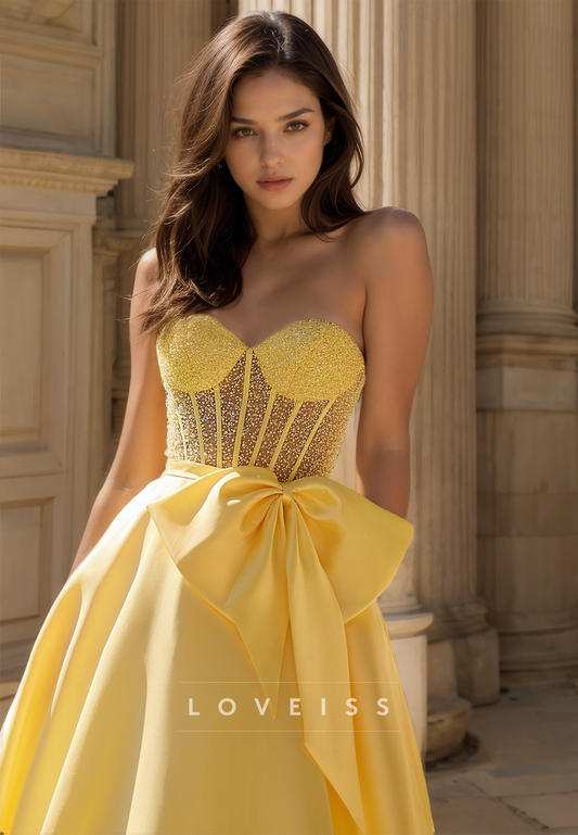 Sweetheart Strapless Beaded Bowknot Sleek A-Line Prom Dress