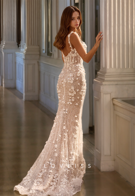 Scoop Straps Floral Embellished Appliques Mermaid Prom Dress