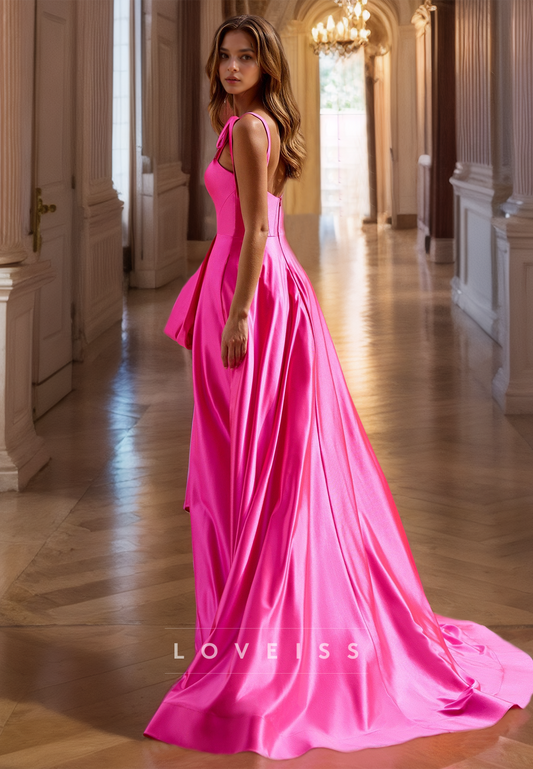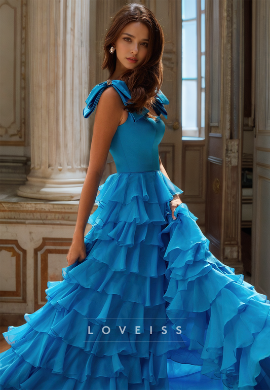 Square Straps Bowknot Tiered A-Line Prom Dress