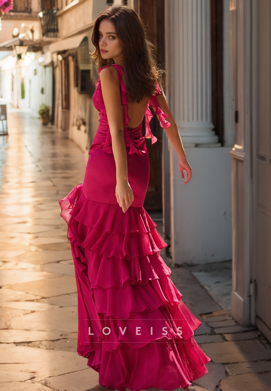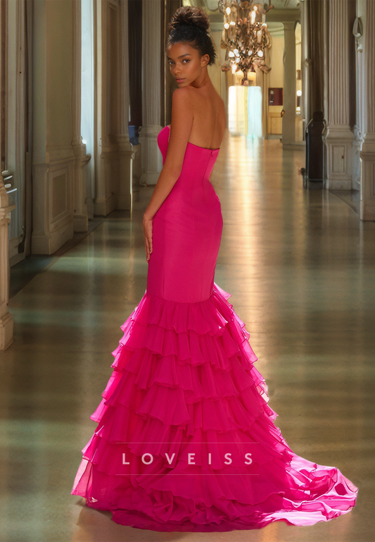 Sweetheart Sleeveless Pleated Ruffled Tiered Mermaid Prom Dress