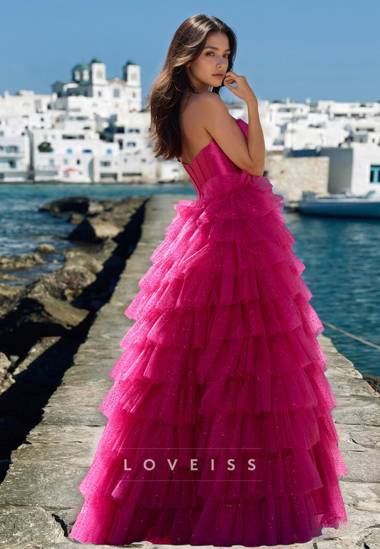 Sweetheart Strapless Appliques Tiered A-Line Prom Dress