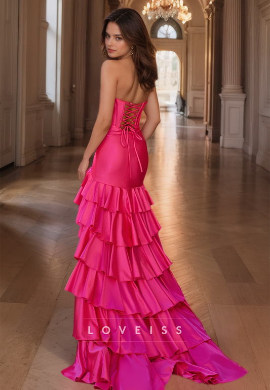 Sweetheart Straps Side Slit Tiered Mermaid Prom Dress