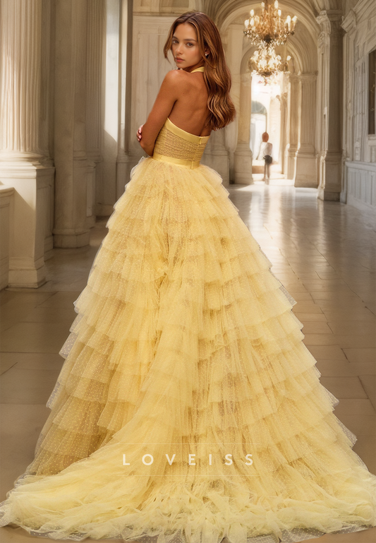 Sweetheart Sleeveless Illusion Tiered Tulle Ball Gown A-Line Prom Dress