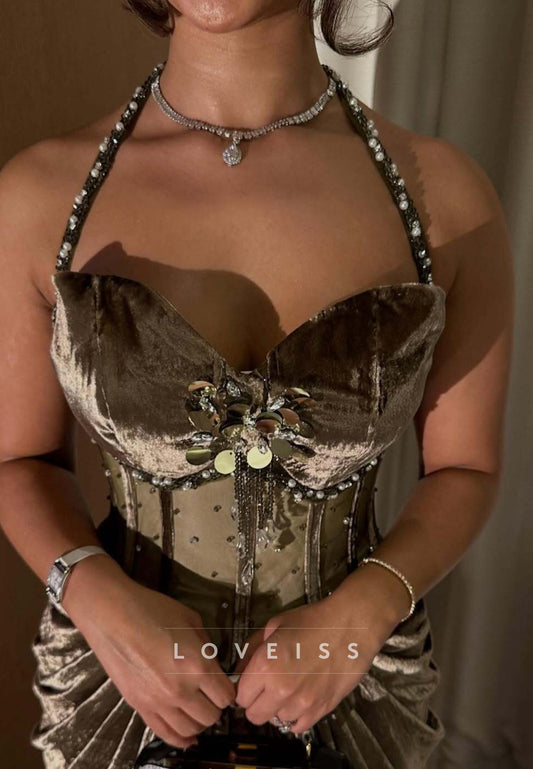 Halter Sweetheart Ruched Velvet Mermaid Prom Dress