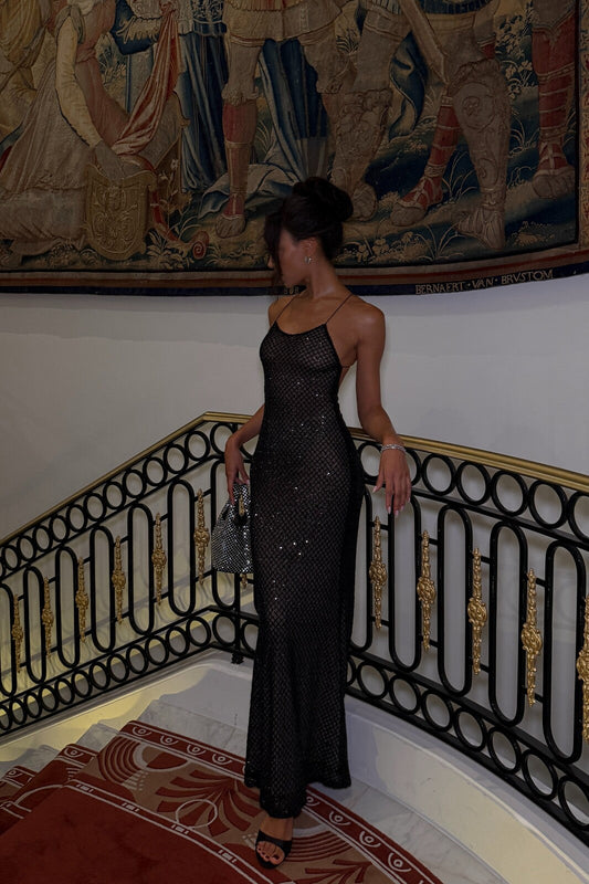 V-Neck Spaghetti Straps Sequins Sparkly Sheath Prom Dress