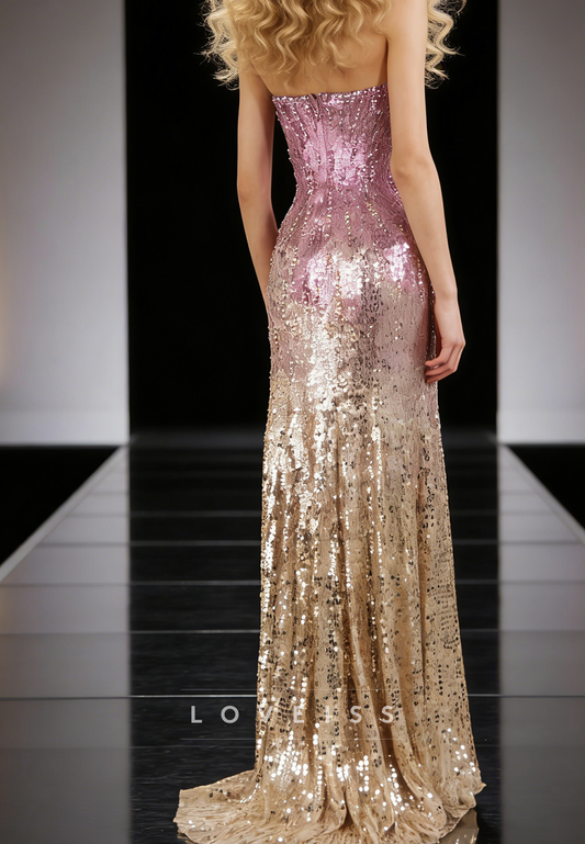 Sweetheart Beaded Side Slit Sheath Prom Dress
