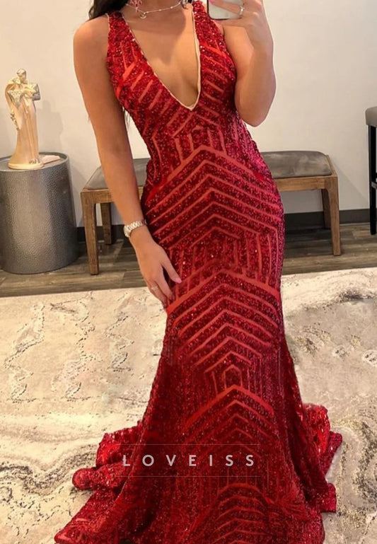 Deep V-Neck Sequins Sparkly Mermaid Prom Dress
