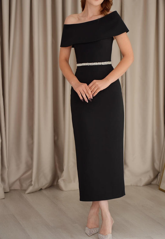 Off-Shoulder Sleeveless Side Slit Wedding Guesst Dress Sheatth Formal Dress
