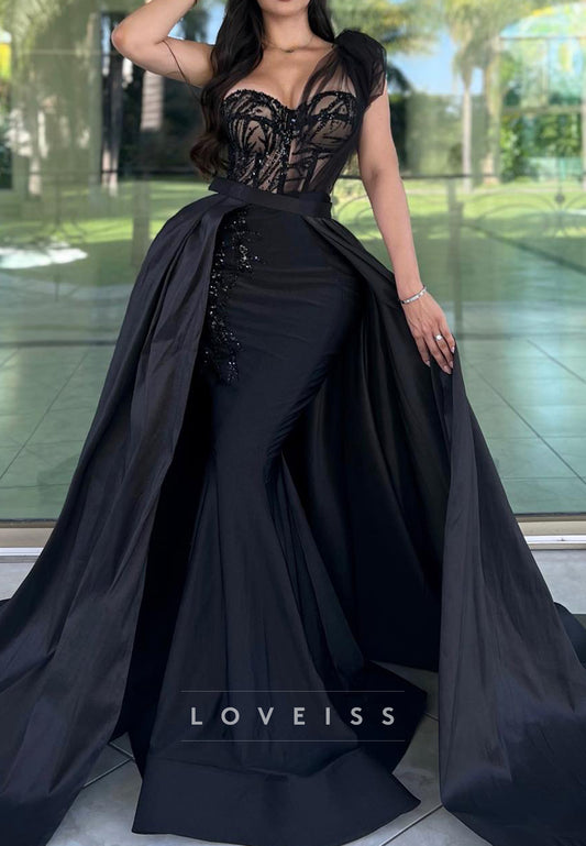 Off-Shoulder Strapless Pleated Sequins Appliques Prom Dress Mermaid Party Dress
