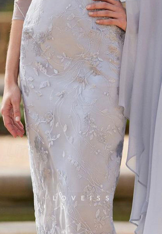 V-Neck Half Sleeves Appliques Sheath Mother of Bride Dress