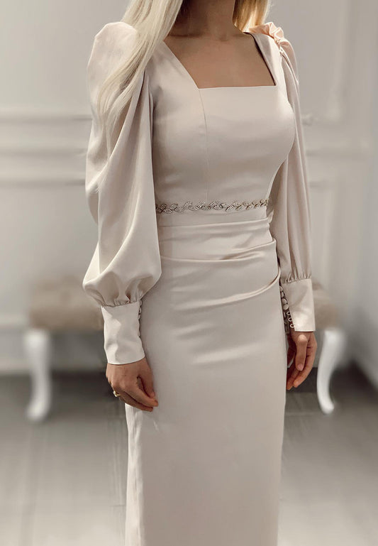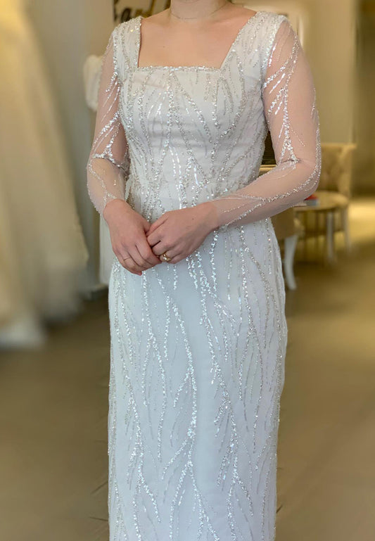 Square Long Sleeves Beaded Embroidery Sheath Mother of Bride Dress