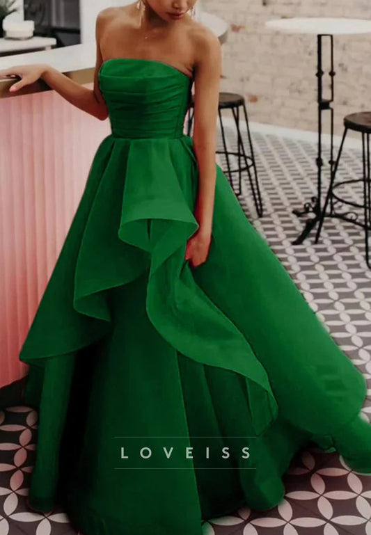 Straight Across Organza Tiered Prom Dress A-Line Party Dress