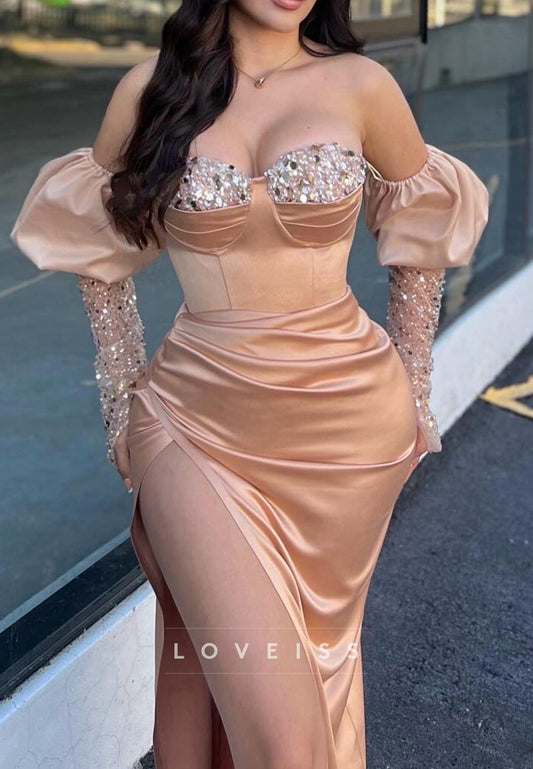 Sweetheart Long Sleeves Sequins Prom Dress Sheath Formal Dress