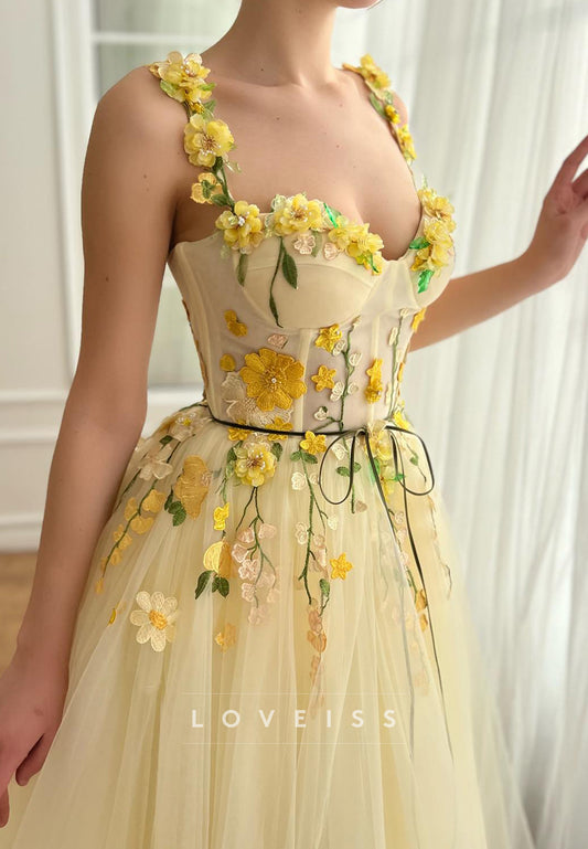 Sweetheart Straps Tulle Floral Prom Dress A-Line Party Dress