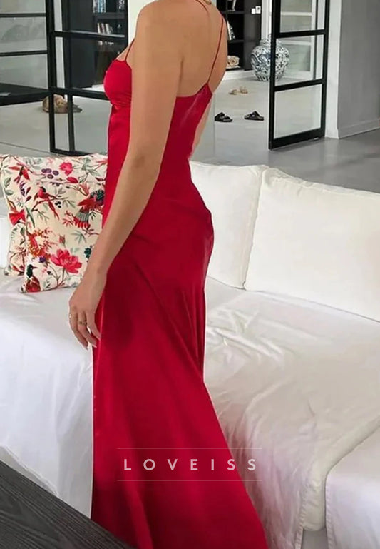 Sweetheart Spaghetti Straps Sleek Prom Dress Sheath Party Dress