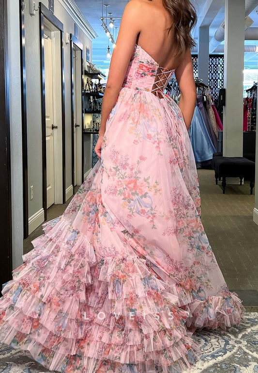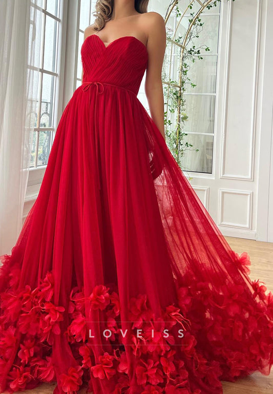 Sweetheart Floral Pleated Tulle A-Line Prom Dress