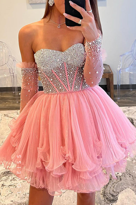 Sweetheart Sleeveless Pleated Beaded Prom Dress A-Line Party Dress