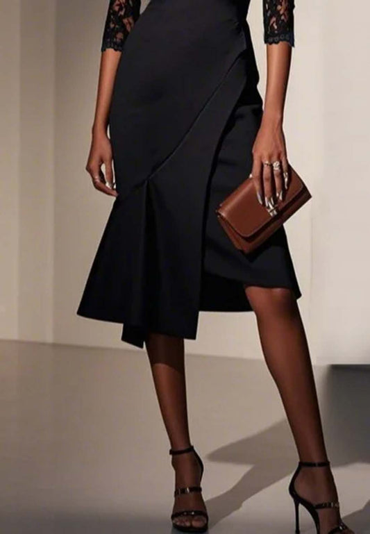 Black Lace Sweetheart Neckline Half Sleeve A-Line Midi Dress