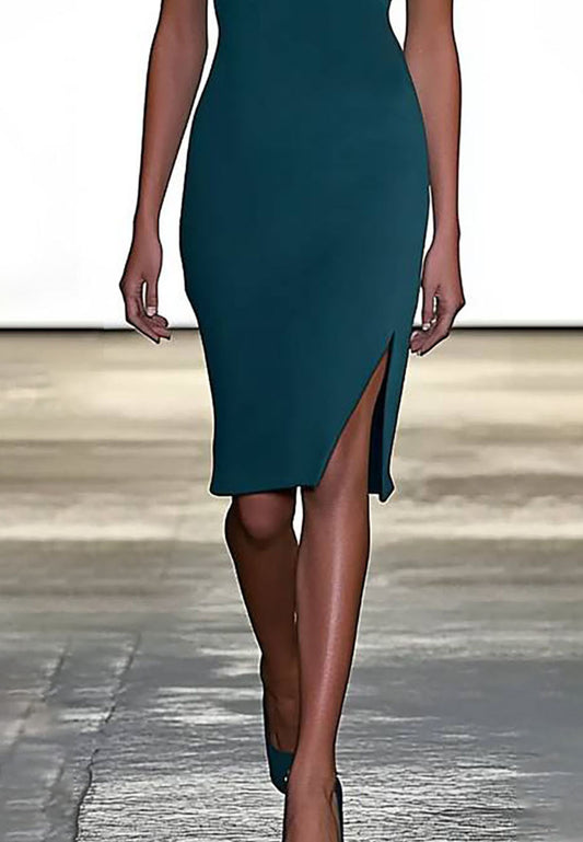 Aqua Blue Sleeveless Mermaid Midi Dress