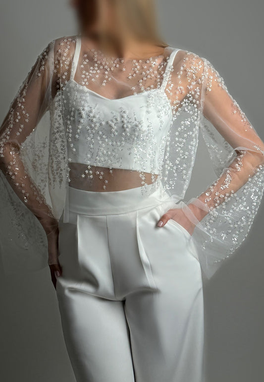 Scoop Spaghetti Straps Appliques Two Piece Jumpsuit