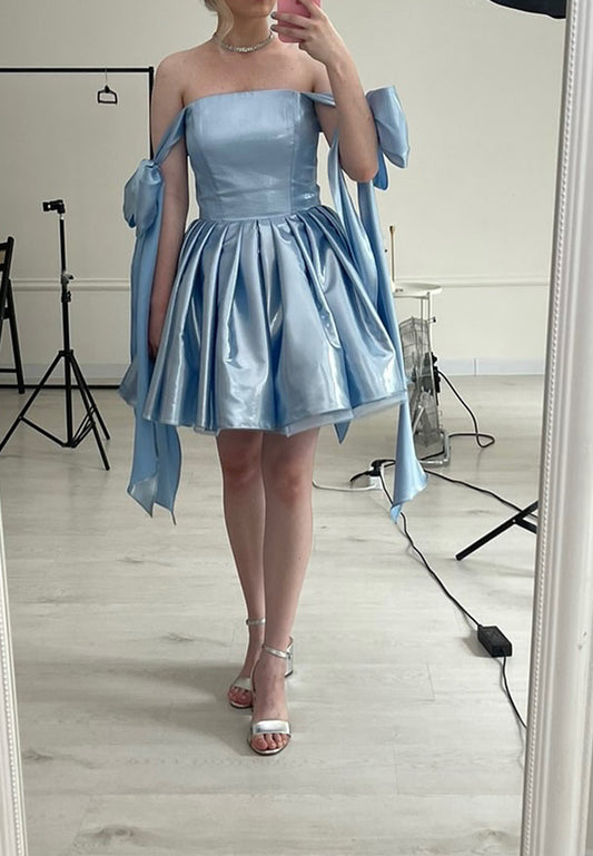 Square Bowknots Pleated A-Line Short Party Dress