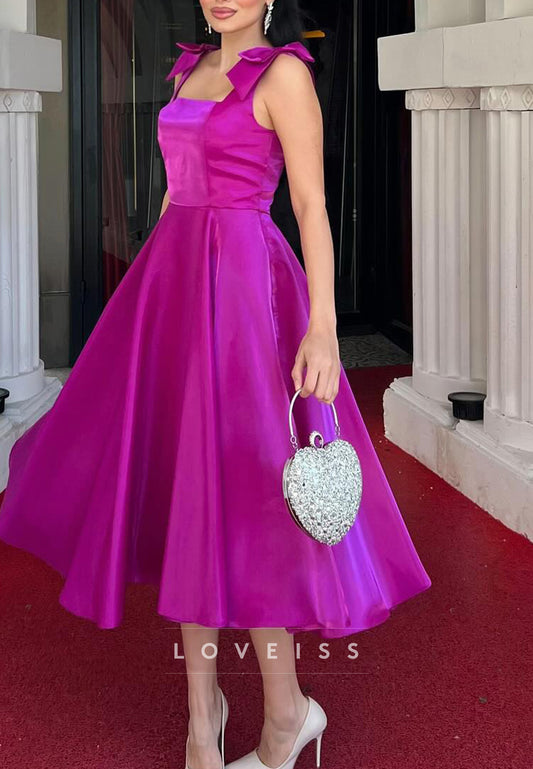 Square Straps Bowknot Pleated A-Line Cocktail Dress Prom Dress