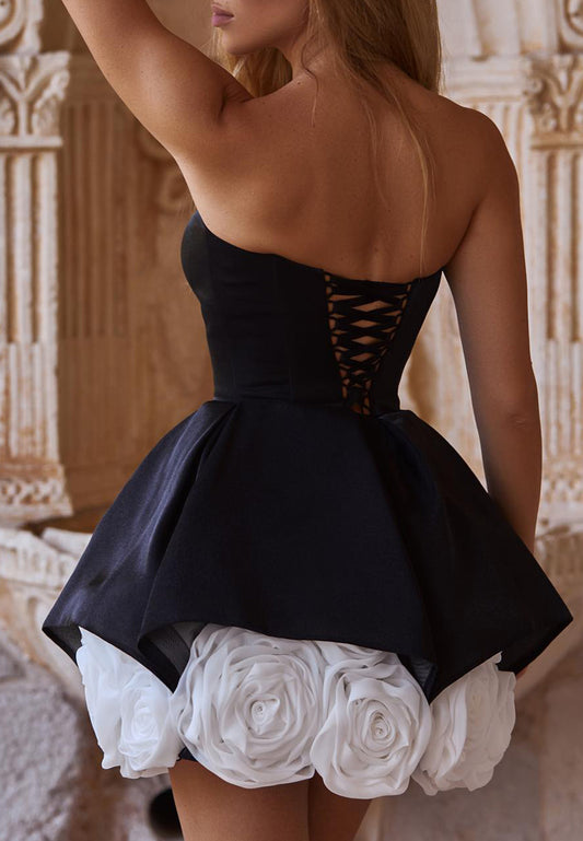 Straight Across Sleeveless 3D Floral Short A-Line Party Dress