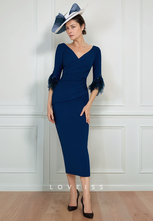 V-Neck Long Sleeves Cocktail Dress Sleek Knee-Length Mother of Bride Dress