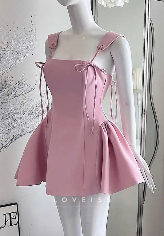 Square Straps Lace-Up Pleated A-Line Party Homecoming Dress
