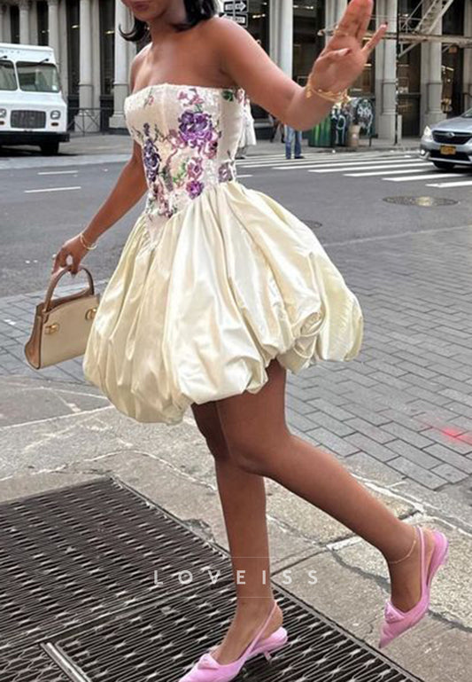 Off-Shoulder Floral Embellished Pleated Tulle Sheath Party Homecoming Dress